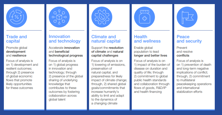Affrontare sfide globali come il cambiamento climatico, l’innovazione tecnologica, la sicurezza e la salute pubblica richiede una cooperazione tra governi, enti e aziende private. Nonostante le crisi, la cooperazione globale è cresciuta rispetto al periodo pre-pandemico. Negli ultimi tre anni, questa crescita si è fermata, principalmente a causa delle tensioni geopolitiche e della sicurezza internazionale.