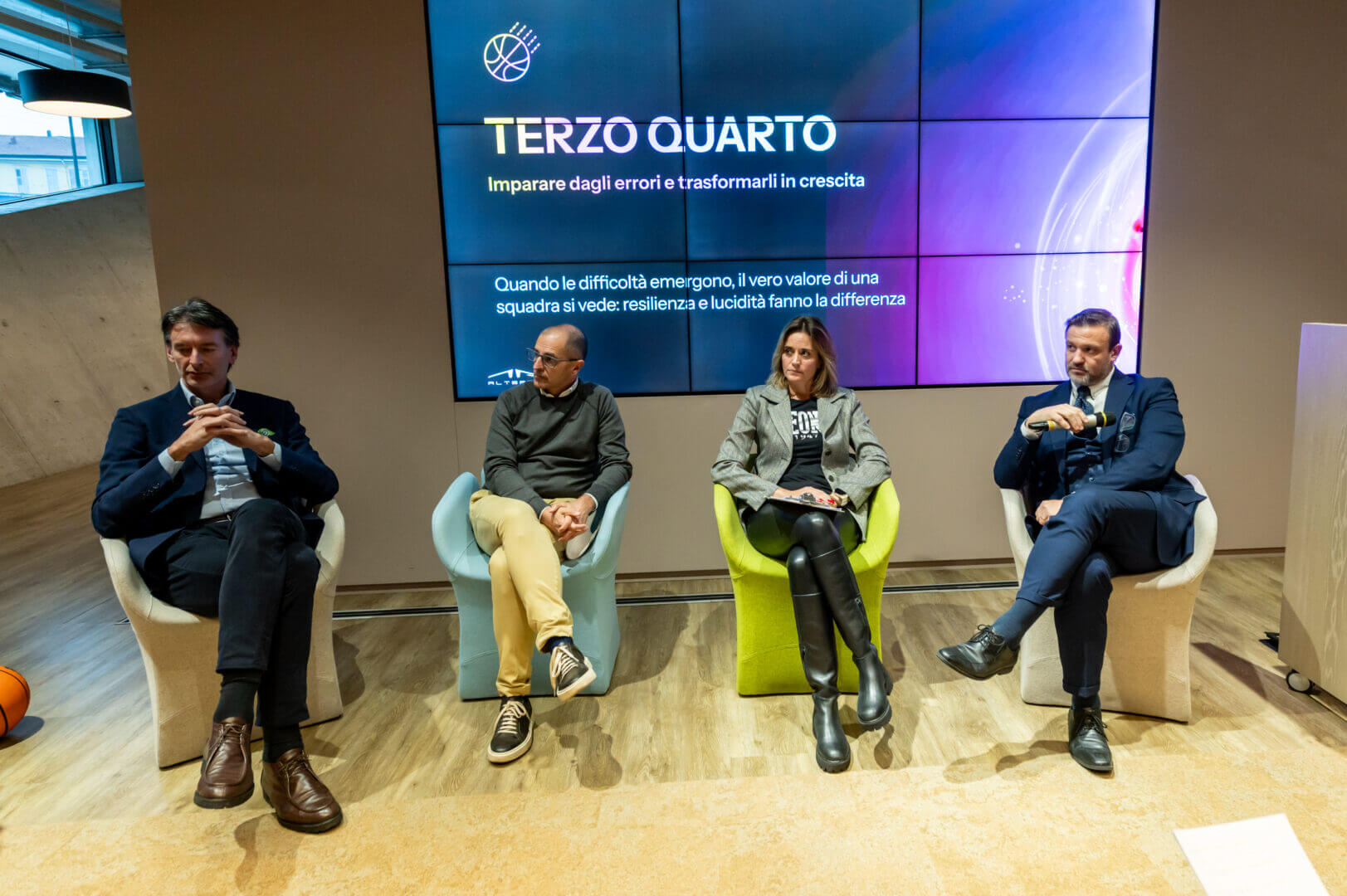 «Il playmaker, più che colui che segna, è colui che fa segnare – ha fatto notare Pittis -. In azienda l’AI offre ottimi assist, ma a fare canestro sono le persone, che vanno messe nelle condizioni di lavorare bene. Il talento ti permette di arrivare in campo, ma non ti basta. Sono i comportamenti, l’allenamento, l’impegno e la credibilità che costruisci nel tempo a determinare se resti in squadra. Per questo è fondamentale far emergere i punti di forza di ciascuno. Mettere una persona in un ruolo che non è il suo è uno degli errori più grandi perché non potrà mai esprimere davvero il proprio potenziale. Una squadra non nasce dalla somma delle individualità. Servono complementarità ed equilibrio tra ruoli diversi, con ogni giocatore nel posto giusto per far funzionare il sistema. Per trovare la via migliore al canestro bisogna coinvolgere tutti i giocatori: nel basket lo chiamiamo far girare la palla. Nelle aziende la strategia è analoga: bisogna coinvolgere le persone nei processi, nei progetti, farle sentire parte attiva della costruzione della soluzione. È questo che genera motivazione e quella disponibilità a dare qualcosa in più quando serve davvero. Consapevoli che l’errore fa parte del gioco. Se sbagli hai due possibilità: subire l’errore oppure andare a prenderti il rimbalzo. Il rimbalzo è la seconda opportunità. Ma non ti cade in mano: devi andartelo a costruire. Ed è qui che torna il tema del mindset: il modo in cui affronti l’errore determina se ti blocchi o vai avanti».