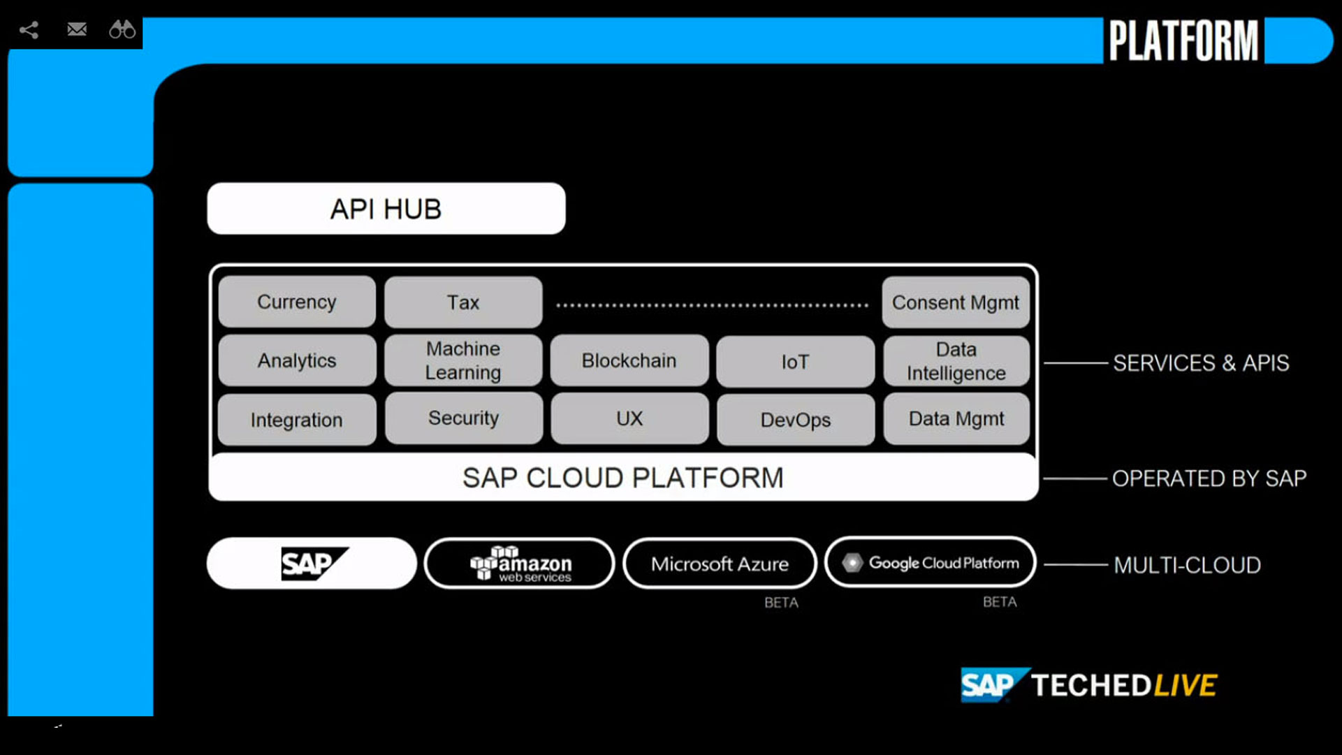 Già disponibile per AWS e Azure, nello scorso marzo è stata annunciata anche la partnership con Google e la disponibilità su Google Cloud Platform. Sul palco di SAP TechEd è stato quindi chiamato Brian Stevens, CTO di Google Cloud, che ha confermato come, grazie a questa partnership, le due aziende “intendono accelerare la digital transformation del business dei clienti con applicazioni intelligenti, come app conversazionali capaci di guidare gli utenti attraverso flussi di lavoro e transazioni complesse e di rispondere a domande sulla propria organizzazione”. In particolare Stevens ha ricordato come quella di gestire e mitigare i rischi nella gestione dei dati sia una priorità per qualsiasi organizzazione che adotta il cloud pubblico: “Nell’ambito della nostra parternship con SAP proponiamo un data custodian model [una sorta di “custode” dei dati ndr] che consentirà alle aziende di monitorare continuamente il posizionamento e l’accesso ai propri dati; la nuova funzionalità Access Transparency di Google Cloud Platform consente di abilitare questo modello andando a fornire una risposta chiara alla domanda delle domande che le aziende che operano in ambienti cloud pubblici si pongono: dove sono i miei dati e chi vi può accedere?”