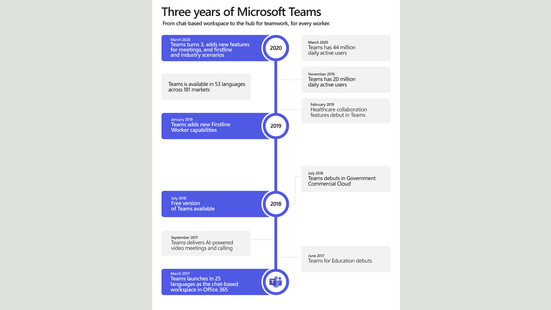 Teams, soluzione di collaboration di Microsoft, ha compiuto tre anni in questi giorni di epidemia Covid-19 e nel suo intervento a una conferenza stampa trasformata in evento virtuale, Satya Nadella, CEO di Microsoft, ha sottolineato come, anche a causa di questa emergenza, “la gente riconosce il ruolo della tecnologia e il modo in cui può aiutare coloro che lavorano instancabilmente per ridurre l’impatto di Covid-19 negli ospedali o attraverso soluzioni di telemedicina. Inoltre, scuole e università insegnano tramite aule virtuali e applicazioni di didattica a distanza, mentre aziende di tutte le dimensioni abilitano il lavoro da remoto da parte dei dipendenti”.