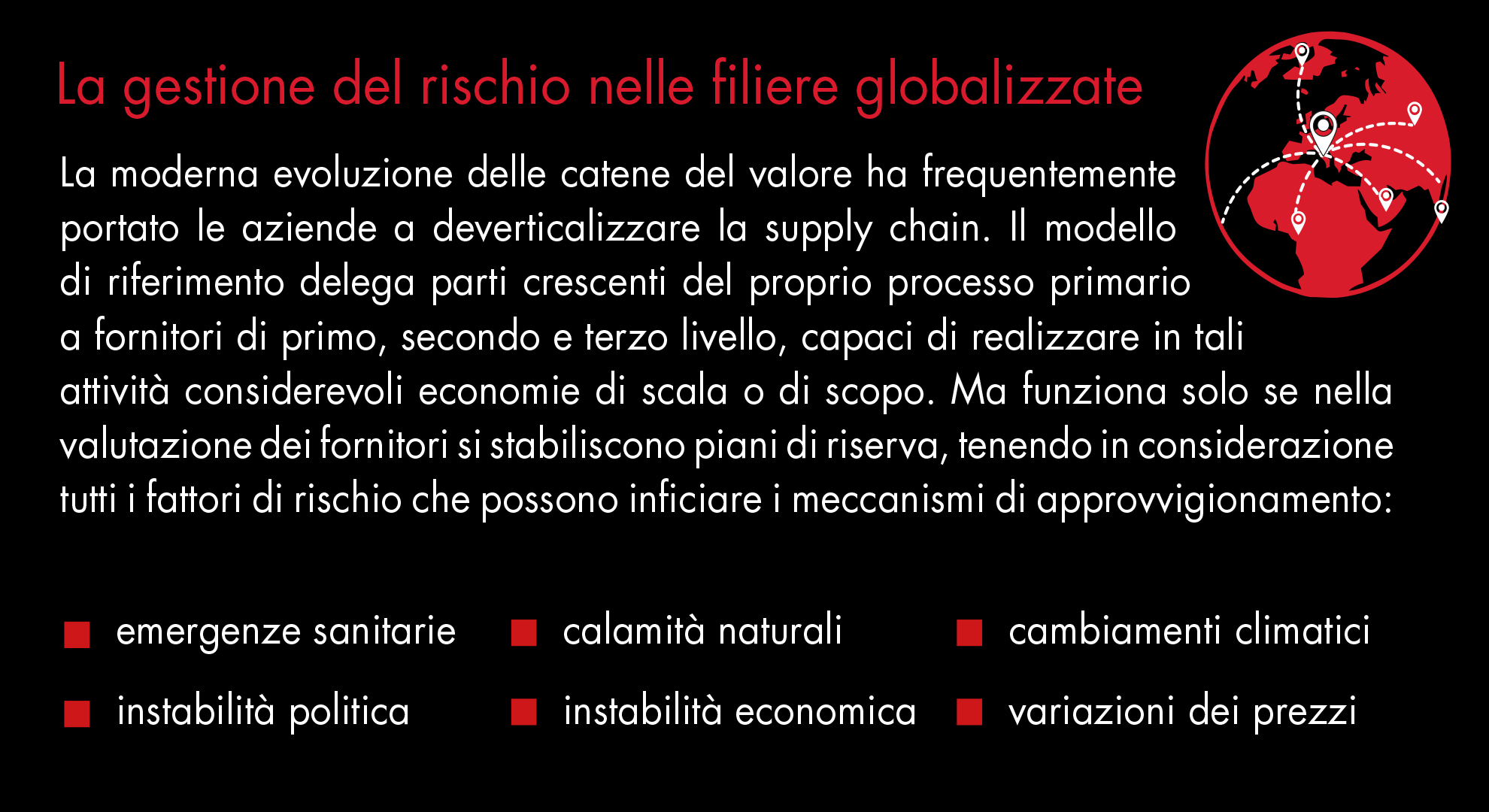 Nel settore automobilistico, ad esempio, tutti i produttori facevano affidamento su parti provenienti dalla Cina: da Toyota in Giappone a General Motors negli Stati Uniti. Il focus dell’operatività dava grande enfasi alla puntualità delle consegne, senza prendere in considerazione il fatto di avere un consistente stock come back-up di sicurezza.