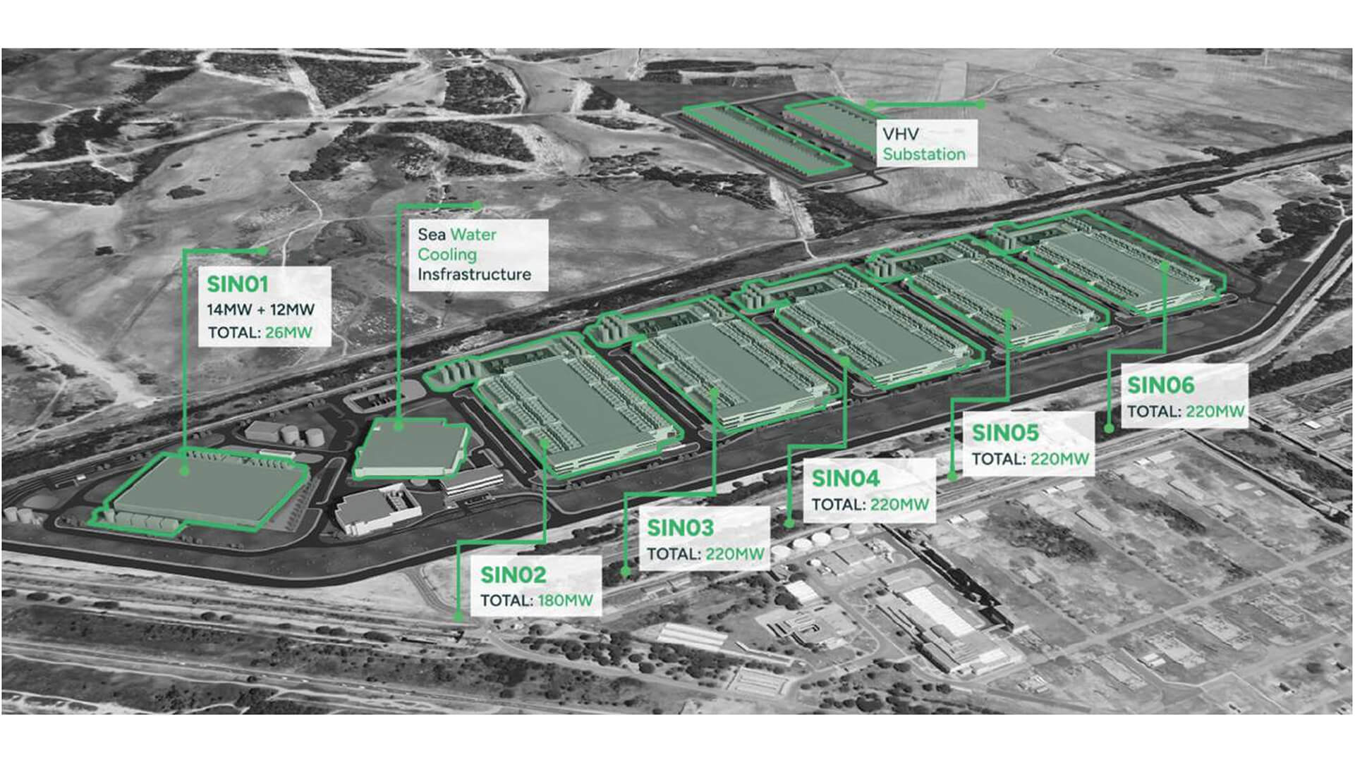Una volta ultimato il progetto, SIN01, con una capacità di 26 MW, rimarrà il meno potente degli impianti, perché, oltre a SIN02, che arriverà a erogare una potenza di 180 MW, gli altri quattro edifici (SIN03, SIN04, SIN05, SIN06) genereranno ciascuno 220 MW.