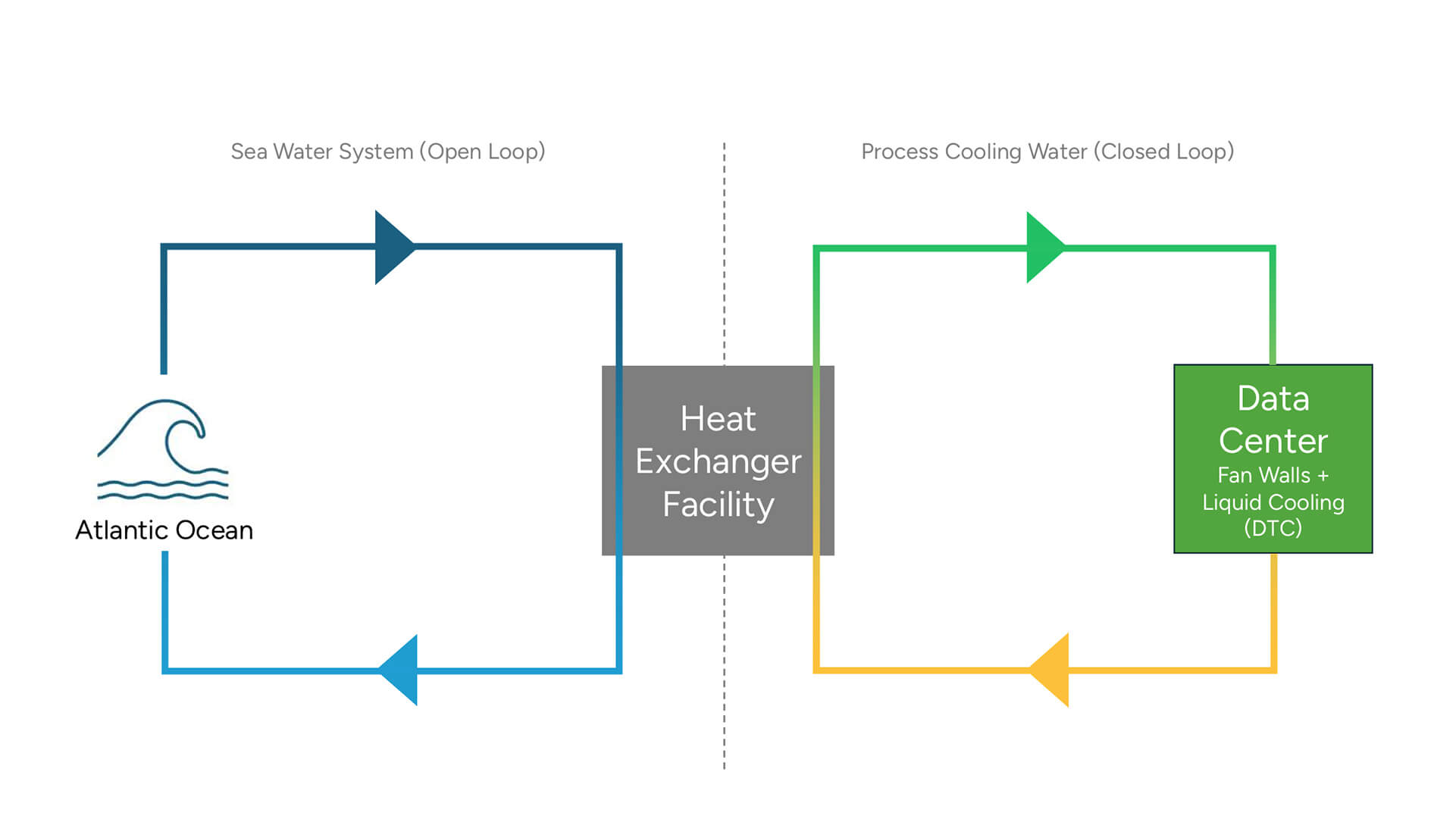 Un altro aspetto innovativo e nodale del centro dati di Sines è il sistema di raffreddamento, basato su tecnologia “liquid cooling”, che ha però una particolarità: utilizza acqua di mare come fluido refrigerante per raffrescare, attraverso uno scambiatore di calore, il liquido di termoregolazione che scorre a circuito chiuso nell’infrastruttura di calcolo del data center. L’acqua di mare viene pompata dal bacino di una centrale elettrica dismessa che si trova a poca distanza, ed è in prossimità dell’oceano Atlantico. Questa tecnica, spiega Start Campus, consente di raggiungere l’obiettivo di ottenere un basso PUE (1.1) e un indice WUE (water usage effectiveness) pari a zero.