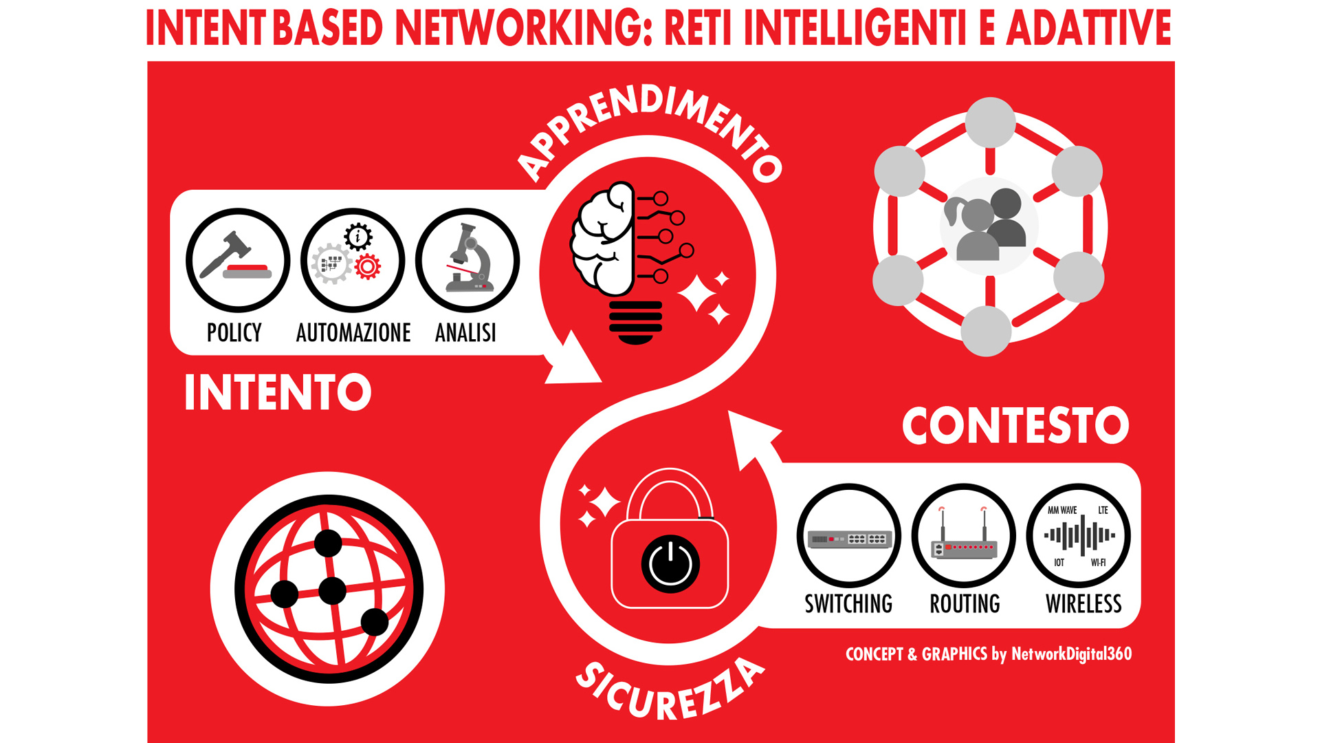 Intent-based Networking (IBN) è sinonimo di una rete intelligente e rappresenta l’era 4.0 della governance. Grazie all’uso di un’automazione associata alle più sofisticate tecniche di machine learning le reti aziendali imparano a correggersi da sole e ad adattarsi alla domanda, configurandosi in maniera adattiva a tutte le esigenze del business. Ecco perché l’Intent-based Networking è la risposta tecnologica a quella costante esigenza di scalabilità, flessibilità e agilità che l’evoluzione digitale impone a tutte le aziende.