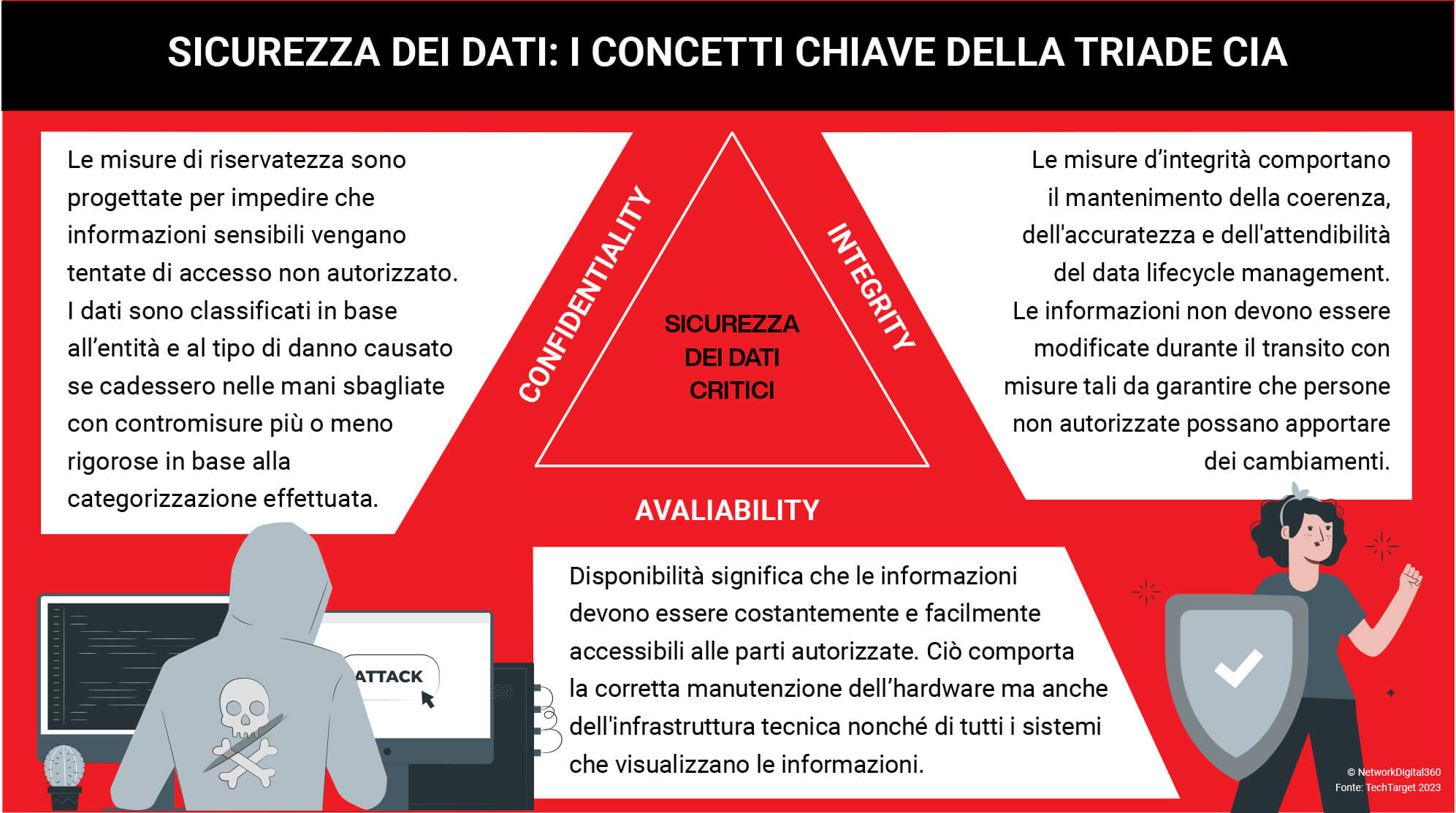 Più in dettaglio, gli esperti ricordano anche come la sicurezza dei dati comprenda principi e linee guida finalizzati a garantire la legittimità degli accessi ai dati, impedendo quelli non autorizzati, preservando così la triade cosiddetta CIA.
