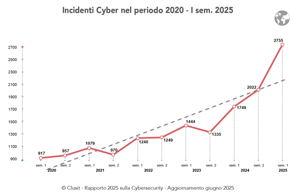 Le evidenze raccolte dal Clusit nel primo semestre 2025 confermano che la professionalizzazione del crimine informatico è ormai un dato di fatto.