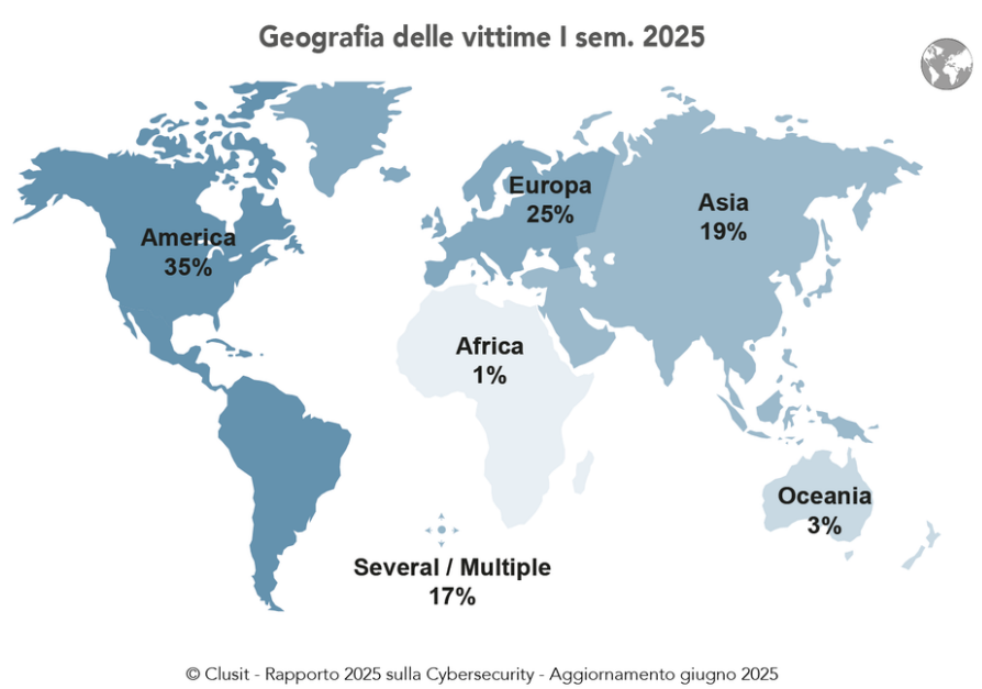 Sul fronte delle vittime, il comparto healthcare rimane il più vulnerabile, con incidenti capaci di paralizzare strutture e compromettere servizi essenziali. La gravità dell’impatto non è quindi solo economica, ma anche sociale e sistemica.