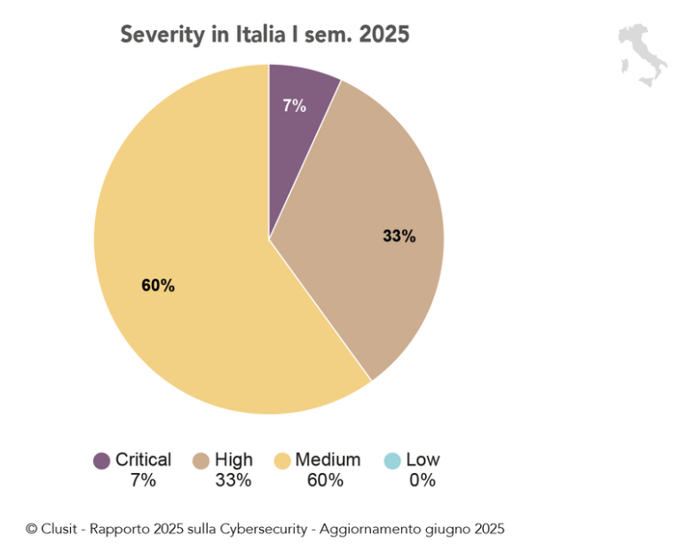 Oltre al numero, preoccupa la gravità degli incidenti. Secondo i dati Clusit, l’82% degli attacchi nel primo semestre 2025 ha avuto impatti gravi o gravissimi, in aumento rispetto al 77% del 2024 .