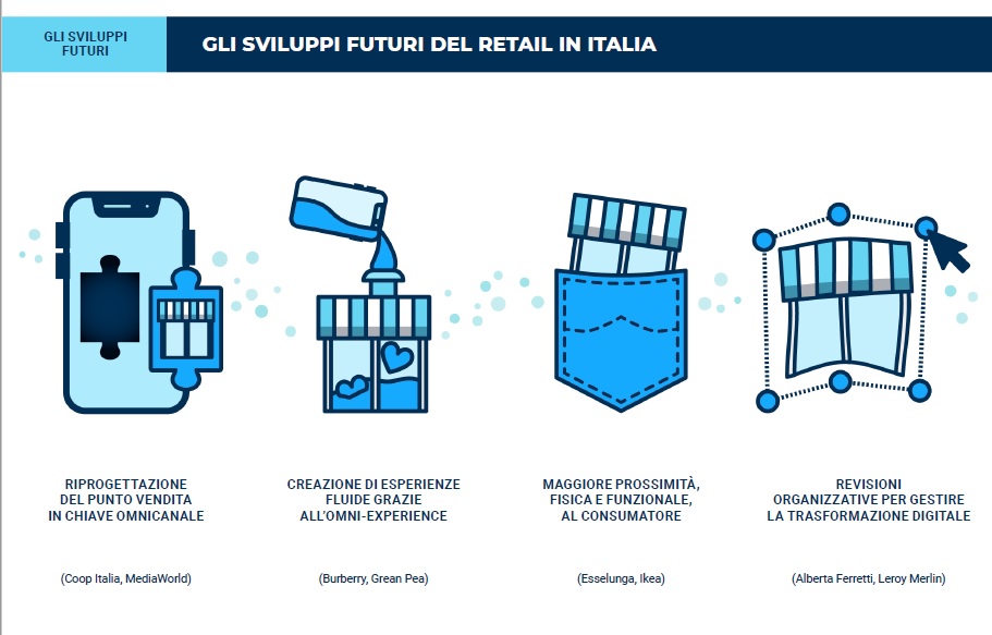 Alla luce dei cambiamenti avvenuti nel corso degli ultimi mesi, il mondo del retail si candida ad affrontare il passaggio verso la normalità in base a 4 direttrici o pillar che rappresentano altrettante linee evolutive probabili.