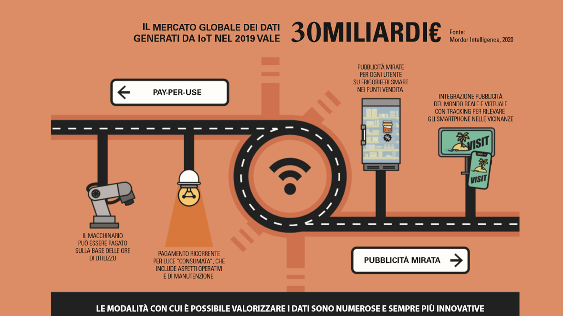 Inoltre, si stanno diffondendo alcuni nuovi modelli “pay-per-use” e “pay-per-performace” per l’acquisto di oggetti connessi che permettono di dilazionare i pagamenti di macchinari industriali, automobili o dispositivi smart per gli edifici (per esempio sistemi di illuminazione), pagabili sulla base dell’effettivo utilizzo misurato dagli oggetti connessi.