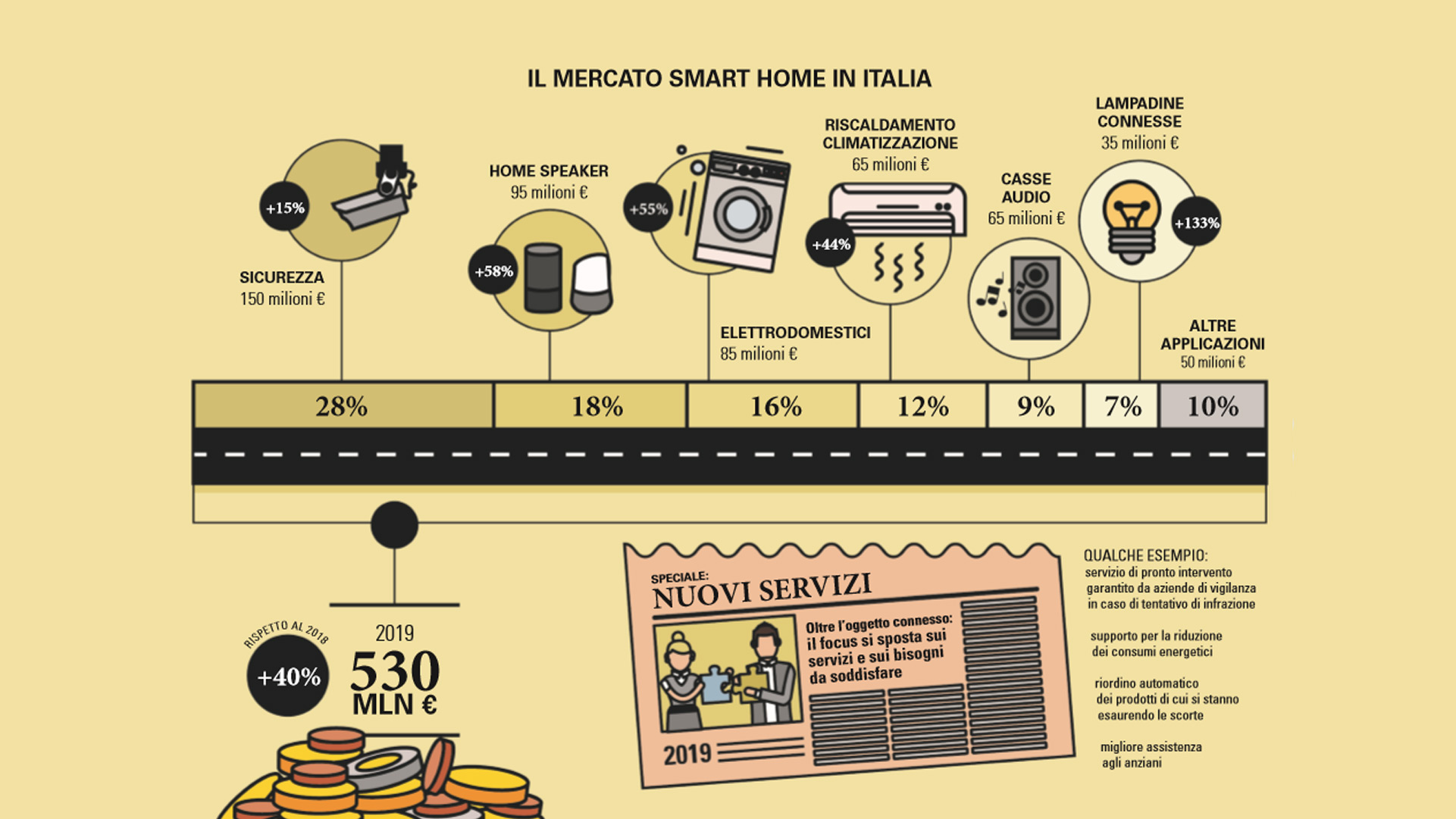 I segmenti con la crescita più significativa sono la Smart home (530 milioni, +40%), trainata in particolare dal boom degli assistenti vocali, la Smart factory (350 milioni, +40%), che negli ultimi tre anni ha beneficiato degli incentivi previsti dal Piano Nazionale Industria 4.0, e la Smart city (520 milioni, +32%), che ha visto crescere il numero di progetti avviati da Comuni italiani e la nascita di nuove iniziative e collaborazioni fra pubblico e privato.