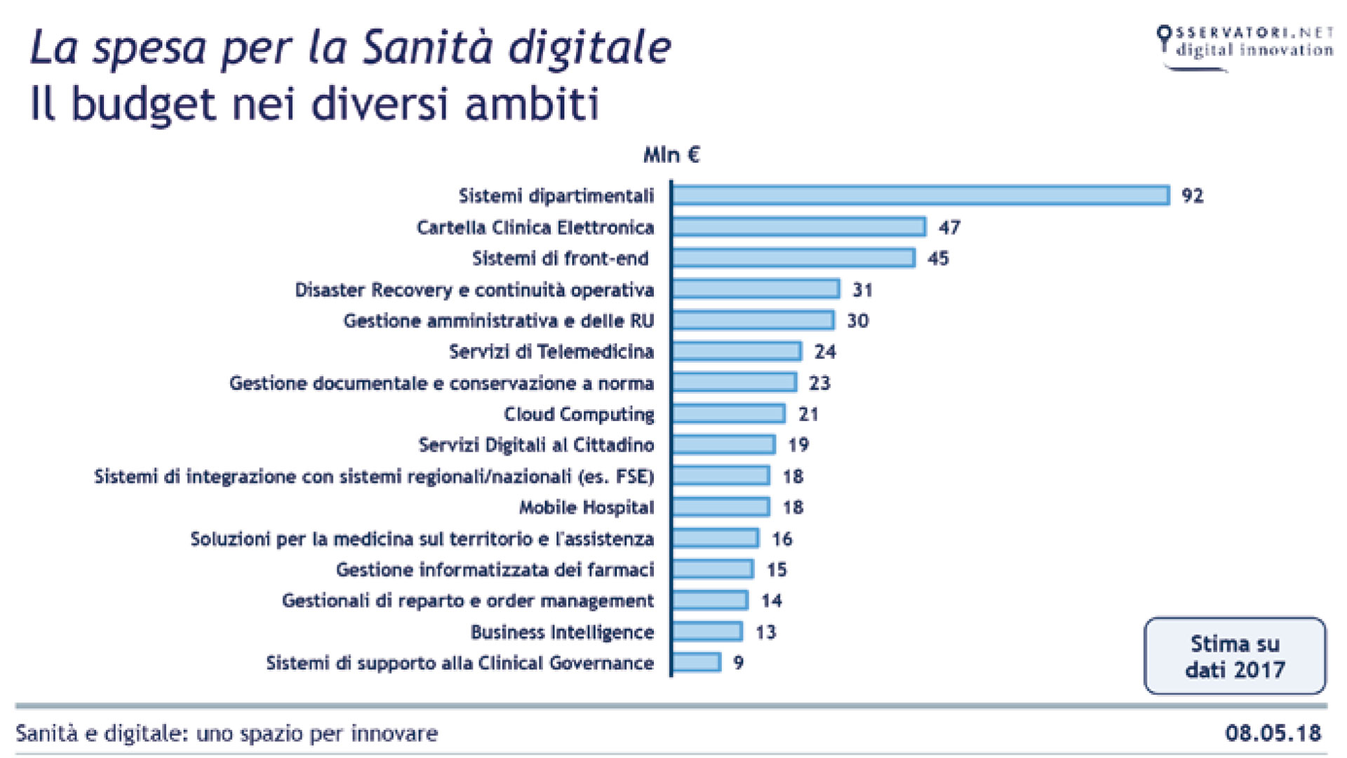 Figura 2 – La spesa per la sanità digitale nei diversi ambiti – Fonte: Osservatorio Innovazione Digitale in Sanità del Politecnico di Milano